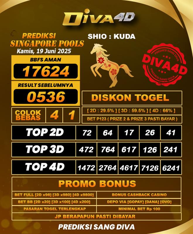 DIVA4D PREDIKSI SINGAPORE POOLS TOGEL HARI: 19 Juni 2025