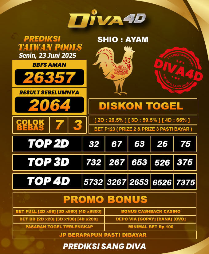 DIVA4D PREDIKSI TAIWAN TOGEL HARI: 23 Juni 2025
