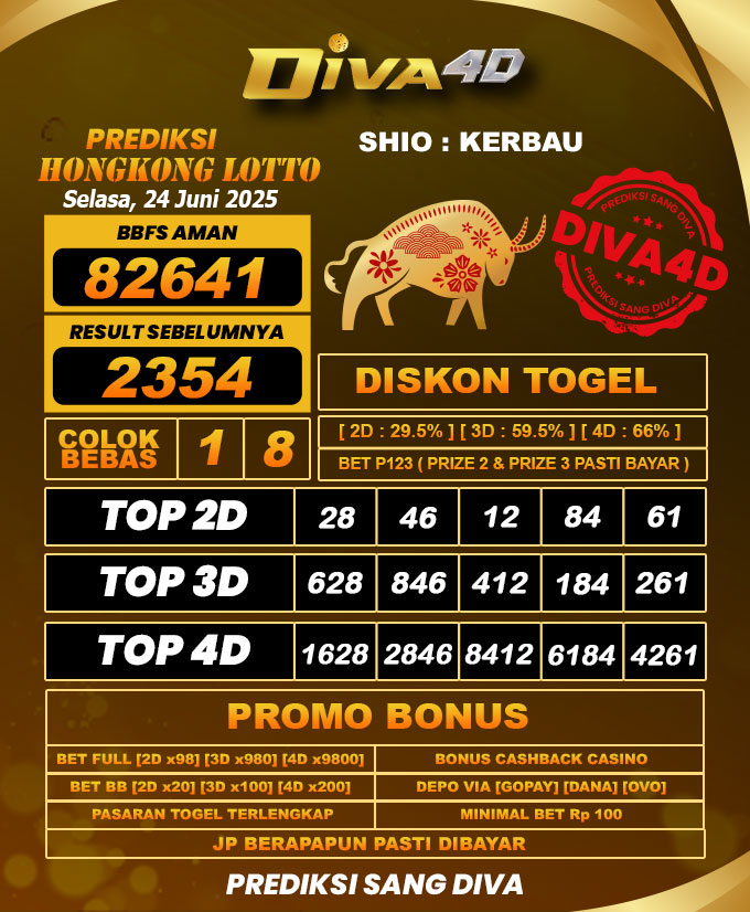 DIVA4D PREDIKSI HONGKONG LOTTO TOGEL HARI: 24 Juni 2025