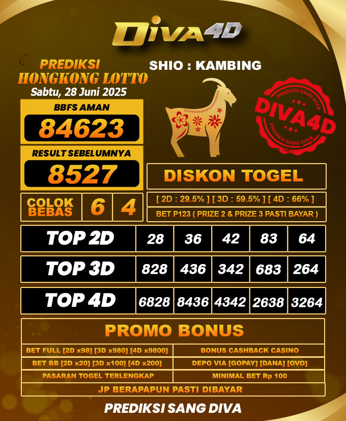 DIVA4D PREDIKSI HONGKONG LOTTO TOGEL HARI: 28 Juni 2025