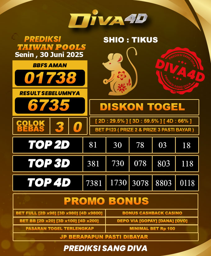 DIVA4D PREDIKSI TAIWAN TOGEL HARI: 30 Juni 2025