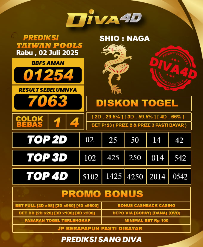 DIVA4D PREDIKSI TAIWAN TOGEL HARI: 02 Juli 2025