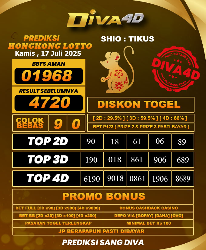DIVA4D PREDIKSI HONGKONG LOTTO TOGEL HARI: 17 Juli 2025